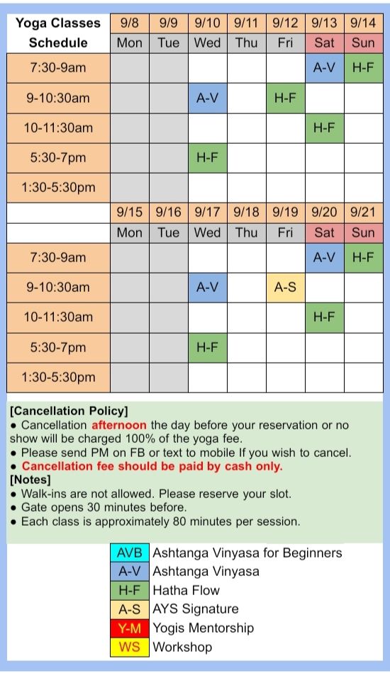 Here is the schedule for Ann Yoga Studio in Silang, Cavite.