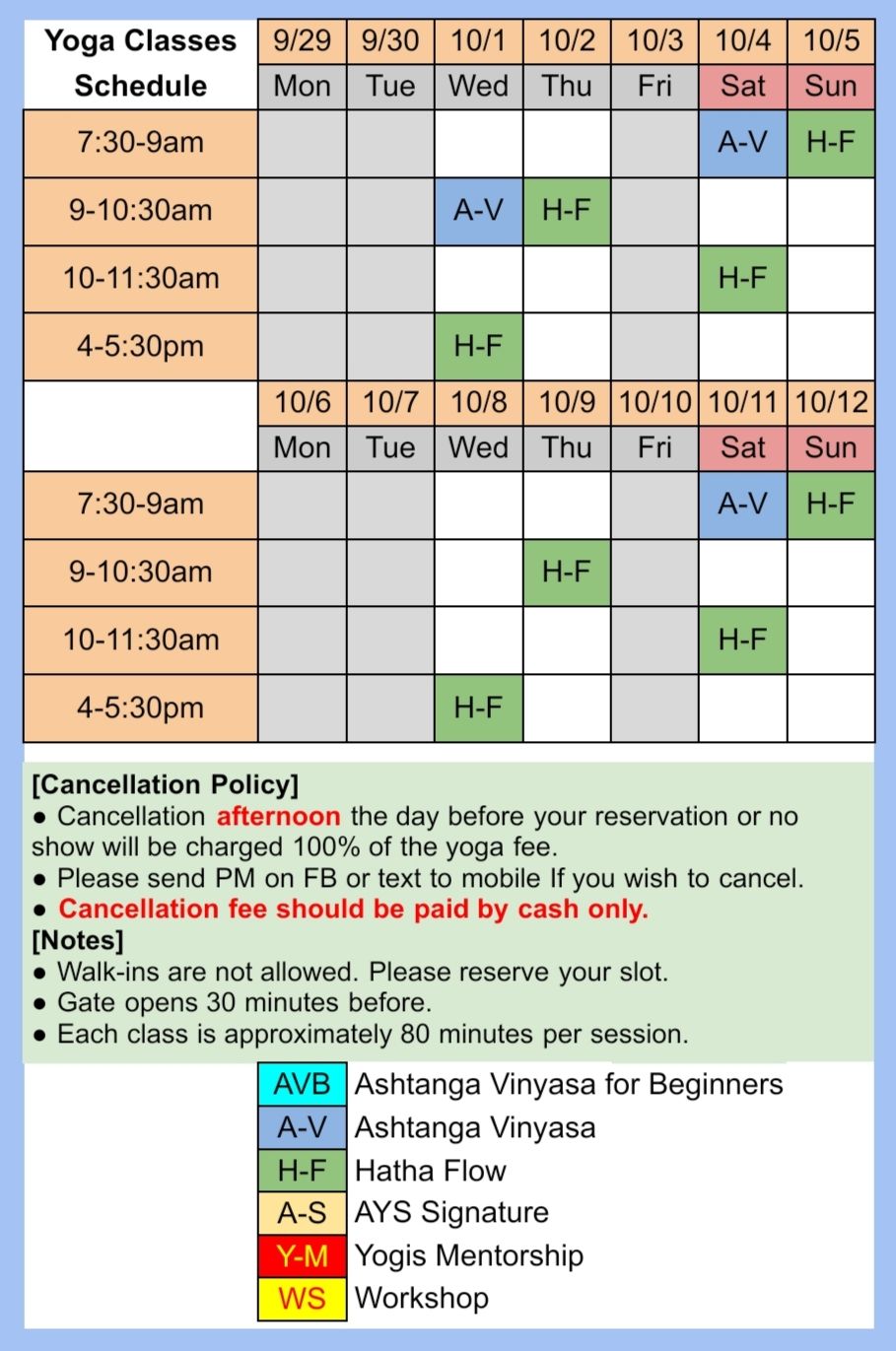 Here is the schedule for Ann Yoga Studio in Silang, Cavite.