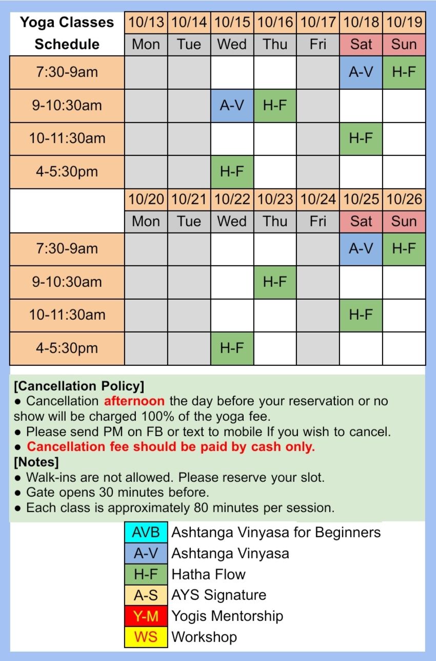 Here is the schedule for Ann Yoga Studio in Silang, Cavite.