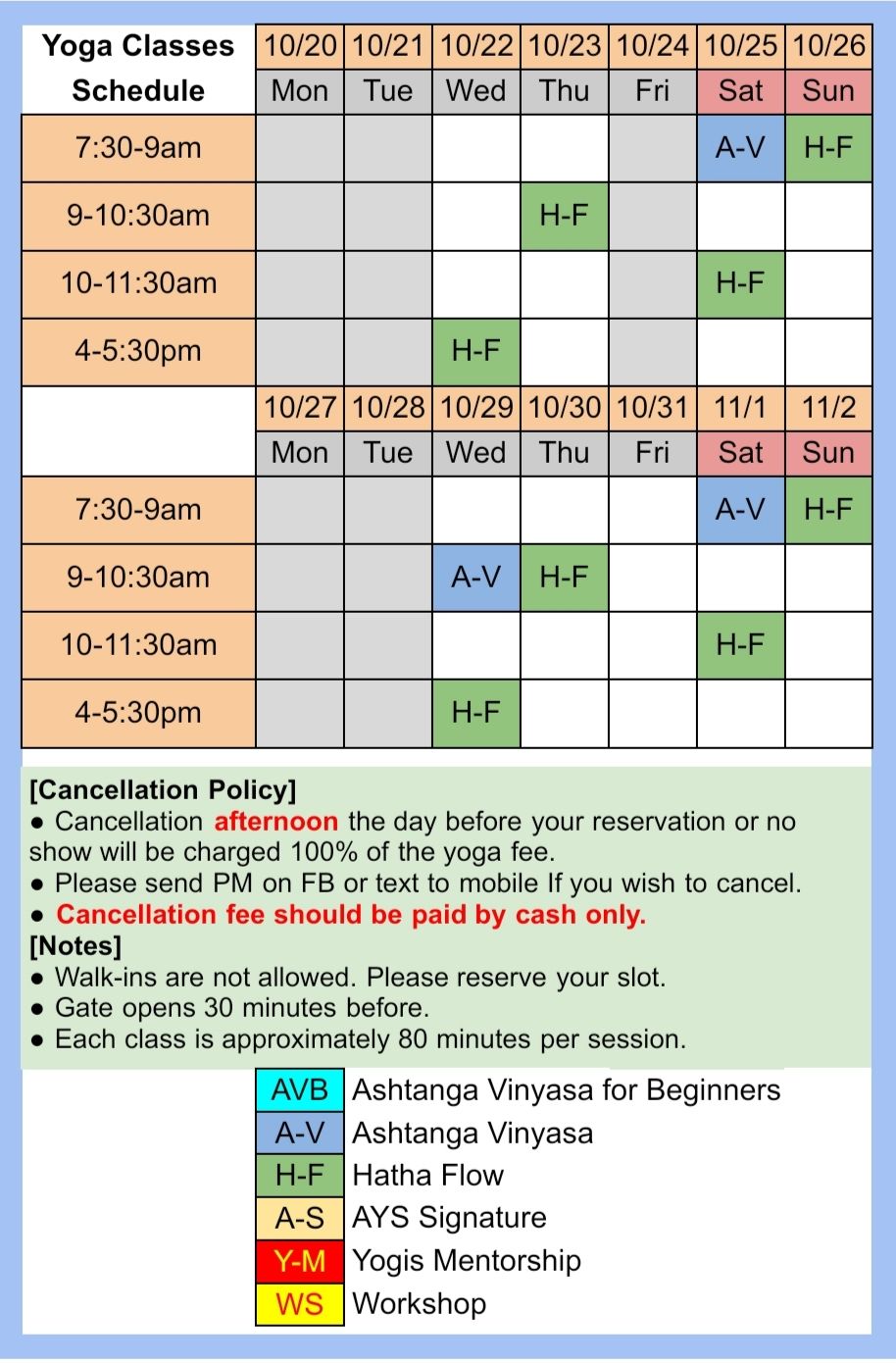 Here is the schedule for Ann Yoga Studio in Silang, Cavite.