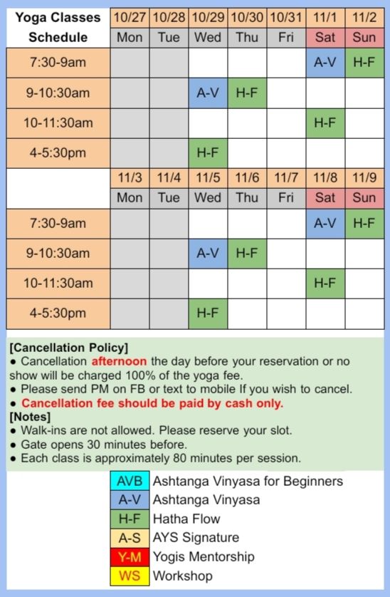 Here is the schedule for Ann Yoga Studio in Silang, Cavite.