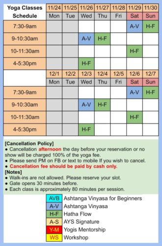 Here is the schedule for Ann Yoga Studio in Silang, Cavite.