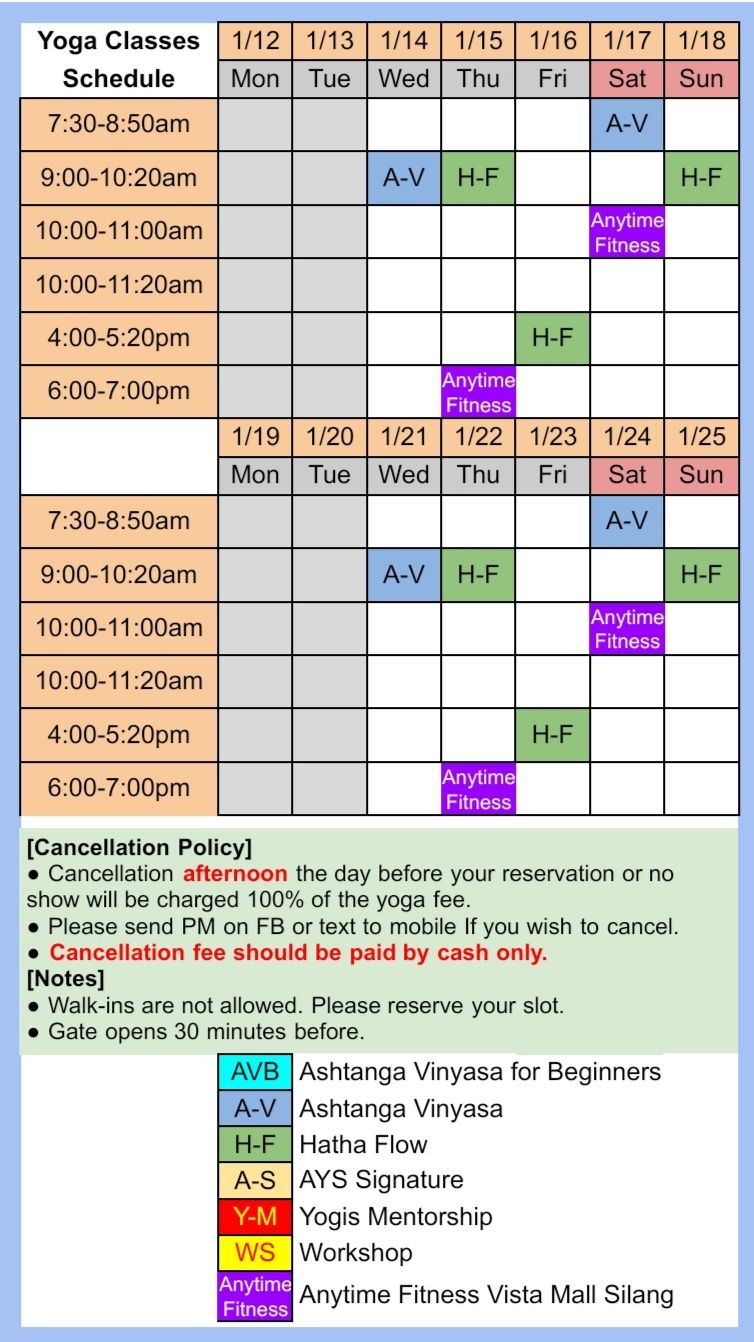 Here is the schedule for Ann Yoga Studio in Silang, Cavite.