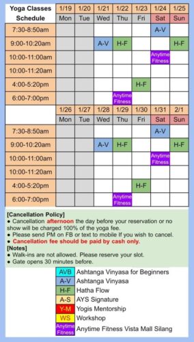 Here is the schedule for Ann Yoga Studio in Silang, Cavite.