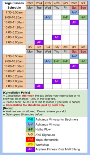 Here is the schedule for Ann Yoga Studio in Silang, Cavite.