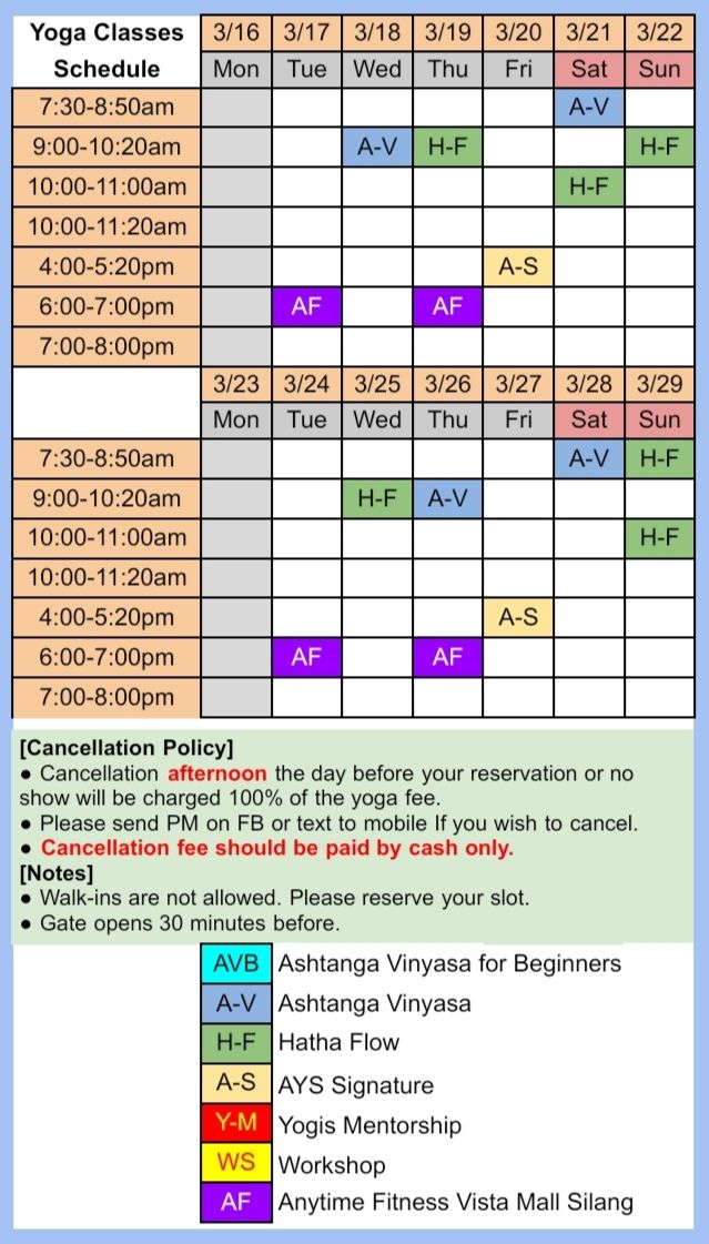Here is the schedule for Ann Yoga Studio in Silang, Cavite.